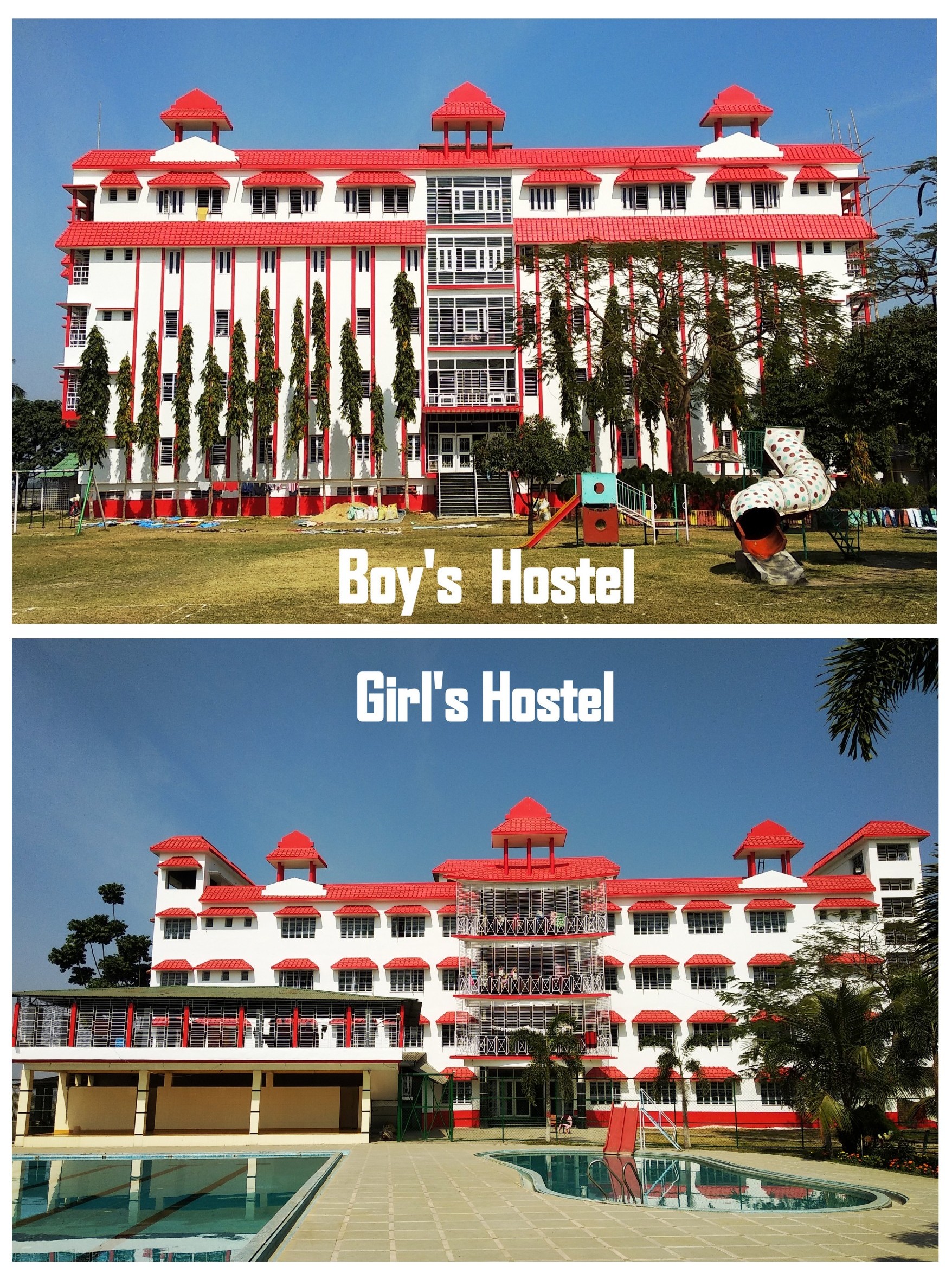 The School is having beautiful swimming pools, One for the Seniors and another for the Junior. It has got a very big Play Ground. Indoor Games Club is situated in the Basement of the Hostel Building. A full set of trained Cook prepares food for the Students. Beautiful open Dinning hall. Varieties of veg and Non veg food, like North Indian, South Indian, Chinese apart from Bengali food are provided to the tudents. The School has own bakery, Swing, Slips of different types in the Children park. Guest Houses for the Guardians inside the School compound which will be made available on advance booking. Bed, Pillow, Bedsheets, Pillow Cover, Mattress are being provided by the School without cost to the students. The class rooms are spacious colourful and attractive. Separate Games Room for the Juniors, Activity Room, Computer Room, Library, Music Room and Conference Room for the child's over all growth. It has been extensively odernized to provide the best amenities for the Children's academic as well as non-academic growth in every respect. It is a unique Educational Institute with 3 Science labs (Physics, Biology, Chemistry). One Geography lab and one Maths lab equipped with modern instruments. A.C. classrooms are available for Junior Classes.