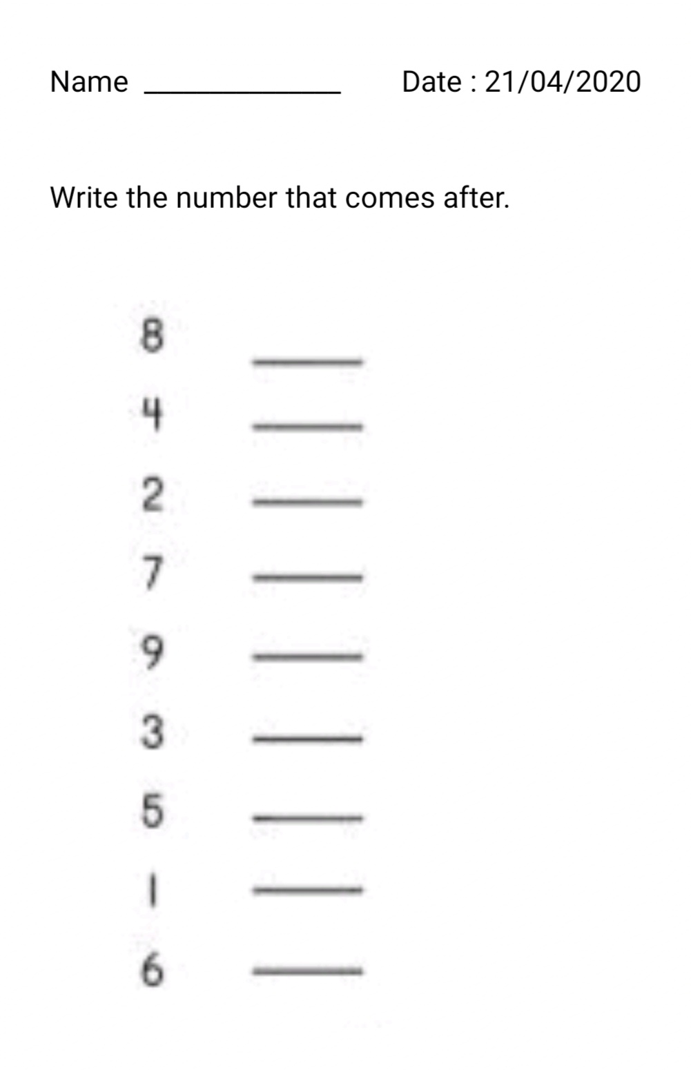 Clasd Nursery Maths Worksheet HW 15/06/20 |