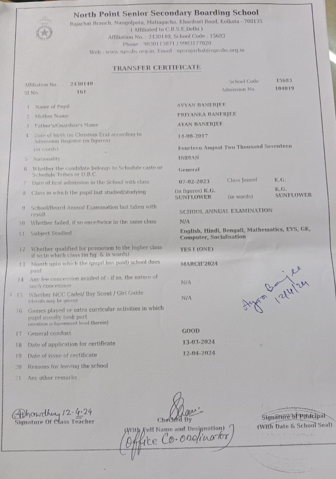 AVYAN BANERJEE KG 2023-24